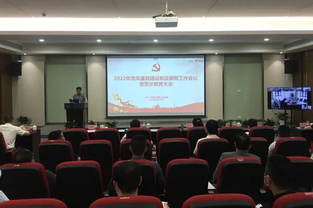 20224月13日,一方制藥以“現場+視頻”形式召開2022年黨風廉政建設和反腐敗工作會議暨警示教育大會。一方制藥黨政領導班子成員、各部門副職及以上管理人員、本部黨支部委員、黨群工作部工作人員在現場參會,各子公司黨組織書記、委員,中層以上管理人員、黨群、紀檢工作人員通過視頻參會。一方制藥黨委書記、總經理沈斌斌同志出席會議并講話,紀委書記、副總經理毛福林同志主持會議。