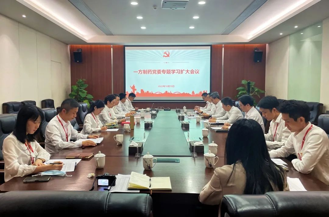 202210月19日,一方制藥召開黨委專題學習擴大會,公司黨政領導班子成員,本部黨支部書記、委員及黨務工作人員共計21人參加。公司黨委副書記、紀委書記周林主持會議。